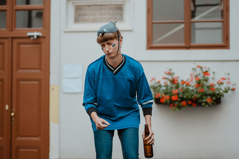 Lucky Hat is a work based on the principle of machine learning, in which the dancer adopts the role of a superstitious machine, learning to recognize the successfulness of her own delivery by evaluating the audience's expression in real time. By finding the right means of expression, movements and their composition, she learns to control the situation. It's like when our favorite sports team scores a goal, and we are convinced that as long as we stay in the same and, in our opinion, magical position we were in when it just happened, our team will continue to be successful.